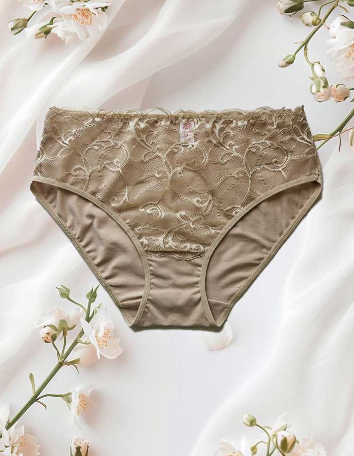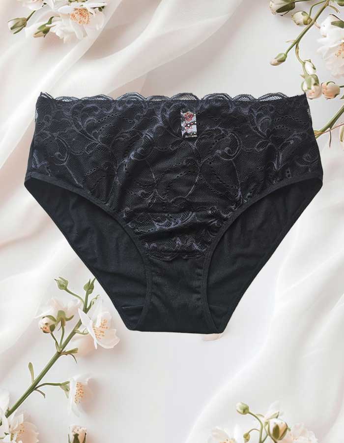 Открий съвършения баланс между комфорт и елегантност с тази класическа бикина с висока талия. Предната част е украсена с богата декоративна дантела, която придава фин завършек и подчертава женствеността.