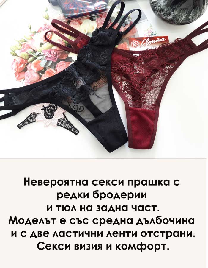Невероятна секси прашка с редки бродерии и тюл на задна част.