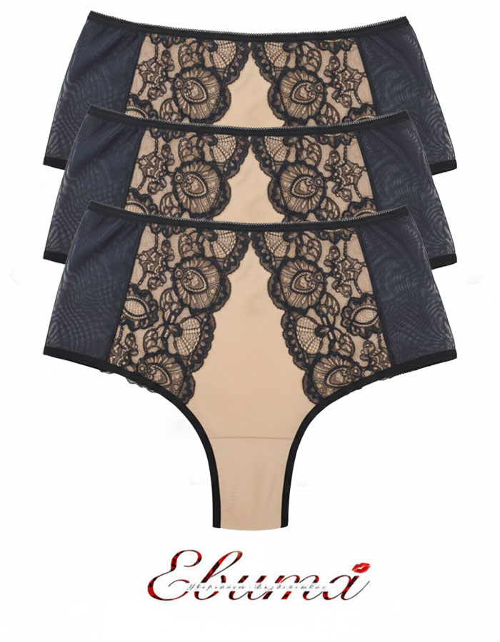 3 броя луксозни бразилиани с висока талия, черно с бежово, 082
