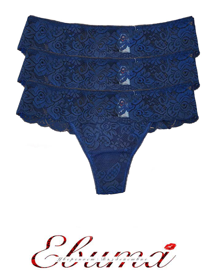 СЕТ 3 броя дантелени бразилиани, тъмно синьо, 408