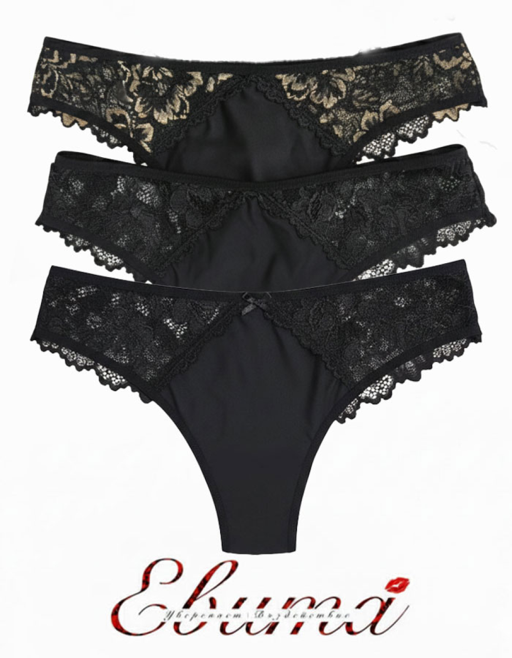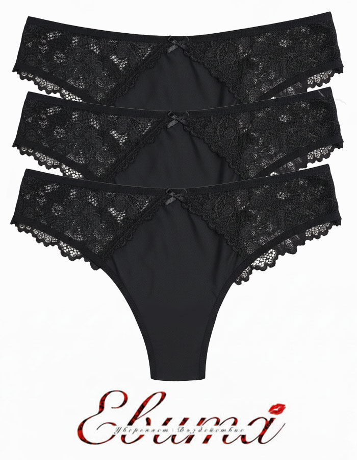 3 броя дантелени бразилиани, Lorina, черен, 381