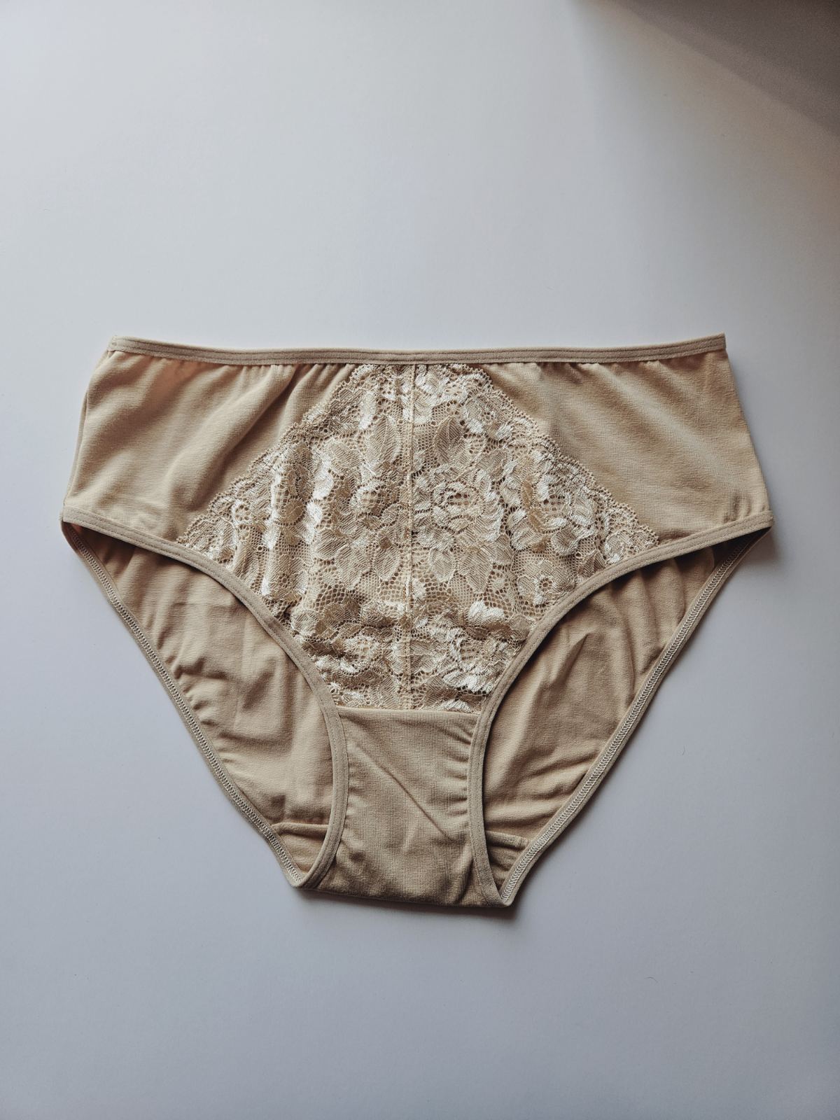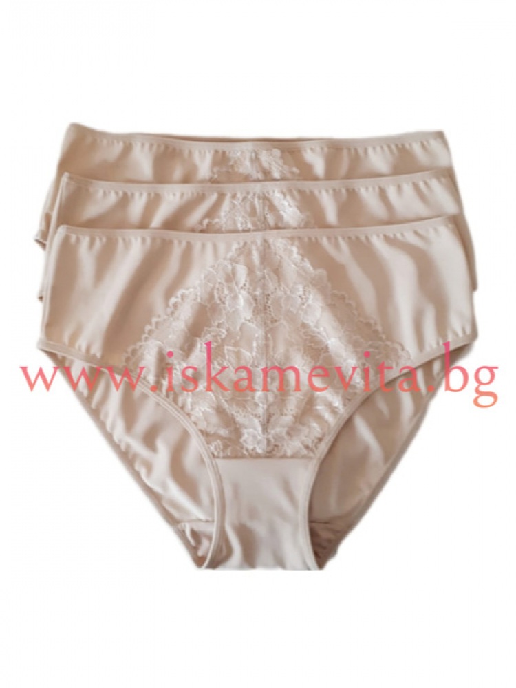 Луксозни бикини 3 броя с удобна висока талия от микрофибър и красива дантелена притурка върху микрофибъра за разкош.