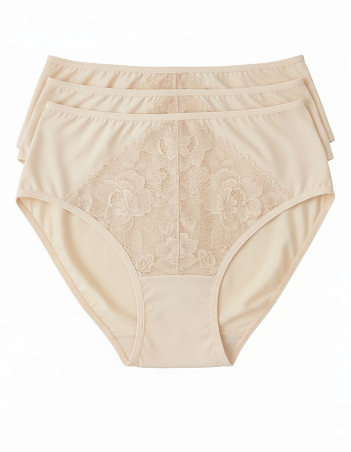 Този комплект от три броя е създаден с внимание към детайла и предлага удобна висока талия, която подчертава женствеността и осигурява максимален комфорт през целия ден.