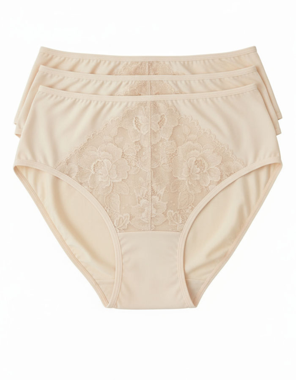 Сет 3 броя луксозни бикини от микрофибър и дантела, Neda, бежово, 65