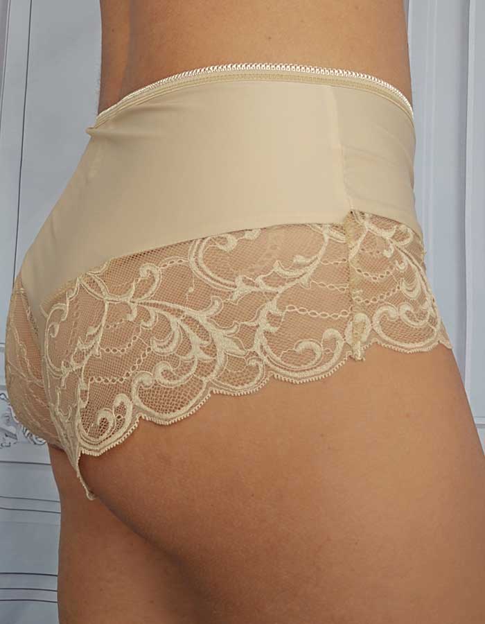 • Луксозна бикина с висока талия от микрофибър и дантела, бежово, 264Луксозна бикина с висока талия от микрофибър и дантела, бежово, 264