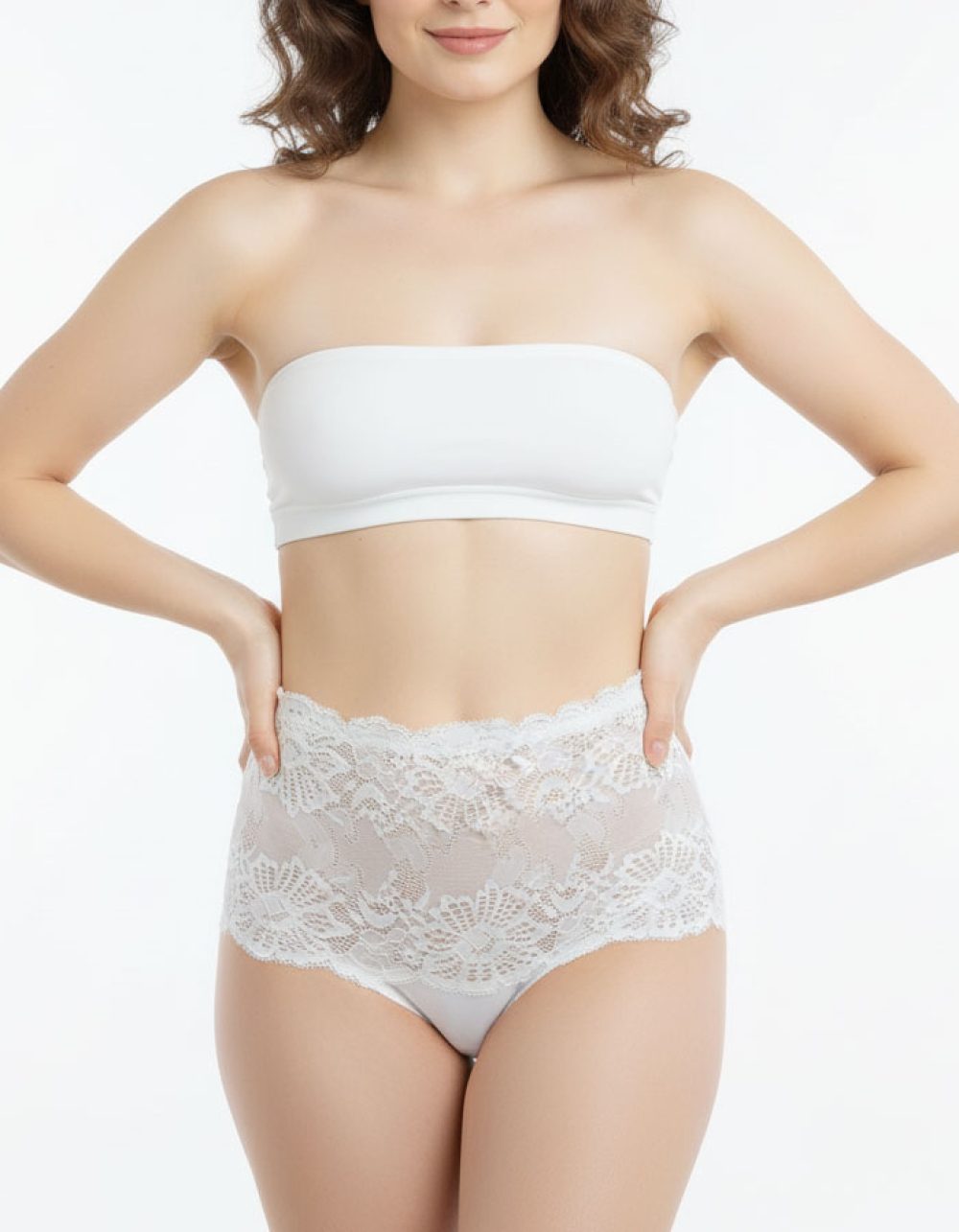 • Луксозна бикина от микрофибър и широк дантелен колан, бяла, 270Луксозна бикина от микрофибър и широк дантелен колан, бяла, 270