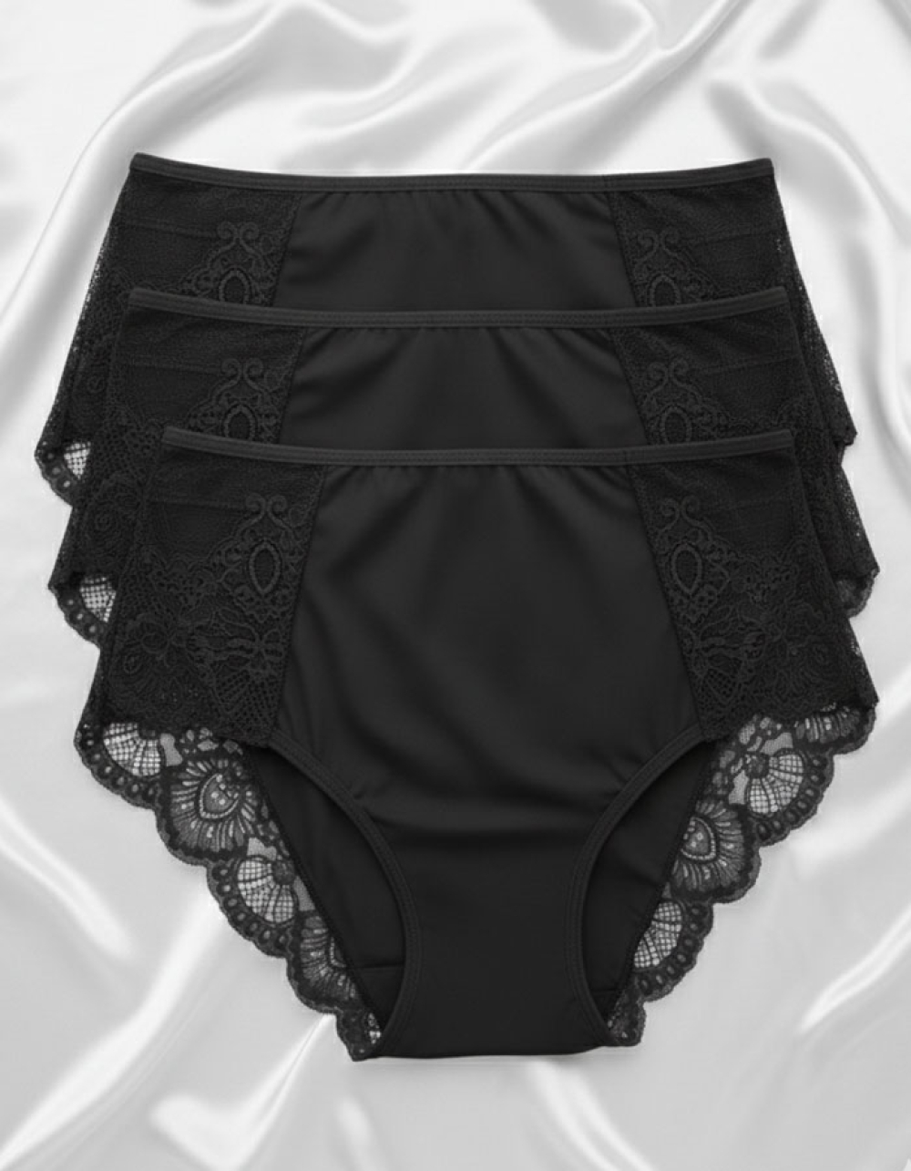 Сет от 3 броя луксозни бикини с висока талия, черен, 112