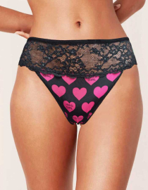 Висока талия бразилиана от дантела, черно/бежово, 492