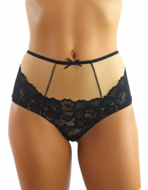 Луксозна бикина от микрофибър и дантела, черно с бежово, 289