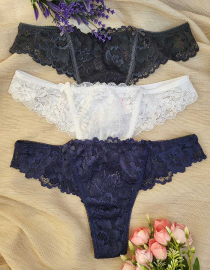 Дантелена бразилиана с голяма панделка отзад, тъмно синьо, 407
