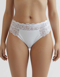 Луксозна бразилиана от микрофибър с дантелен колан, бял, 416