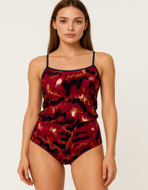 Памучен комплект от потник с широки презрамки и бикина, Lovely, бордо, 032272