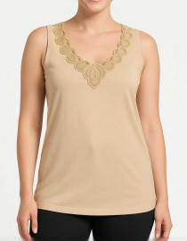 Памучен потник с тънки презрамки, Soft sense, бежово, 051