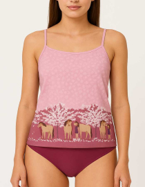 Памучен комплект от потник с тънки презрамки и бикина, розово райе, 051243