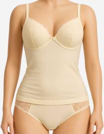 Памучен комплект от изчистен потник с бикина средна дълбочина окрайчена с дантелки, 046147