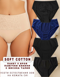 Пакет от 5 броя памучни бикини с висока талия, SOFT COTTON, микс