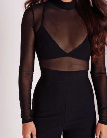 Боди блуза от тюл, ПРАШКА, черен, 056
