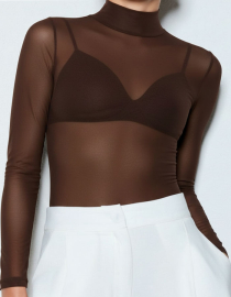 Боди блуза от тюл, ПРАШКА, кафяв, 066