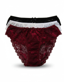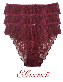 Сет 3 броя Луксозни дантелени бикини, бордо, 253