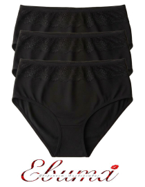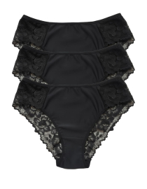 СЕТ 3 броя луксозни високи бикини от микрофибър и дантела, черен, 290