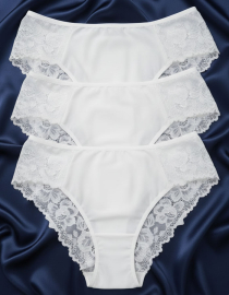 Сет 3 броя луксозни удобни бикини от микрофибър и дантела, бяло, 229