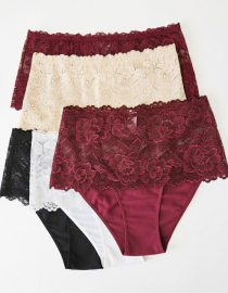 Сет 3 Луксозни бикини боксер с Висока Талия с дантелен колан, микс, 270