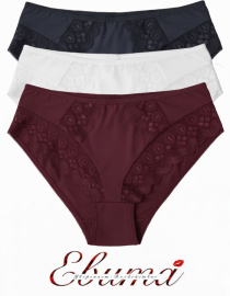 Сет 3 броя Луксозни дантелени бикини, патладжан, 253