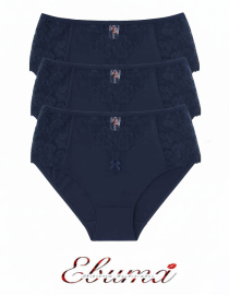 Сет 3 броя памучни бикини с висока талия, Aurora, тъмно син, 161