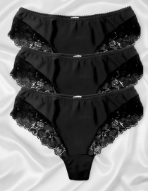 Сет от 3 броя памучна бразилиана с дантелка, черен, 400