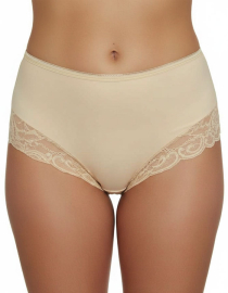 Луксозна бикина с висока талия от микрофибър и дантела, бежов, 274