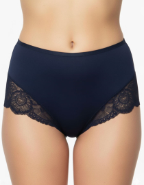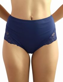 Луксозна бикина с висока талия от микрофибър и дантела, тъмно син, 264