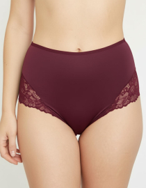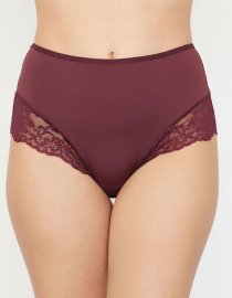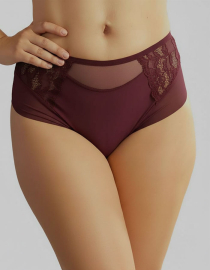 Луксозна бикина с висока талия от микрофибър и дантела, бордо, 264
