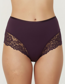 Луксозна бикина с висока талия от микрофибър и дантела, патладжан, 274