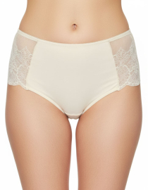 Луксозна бикина с висока талия от микрофибър и дантела, екрю, 274