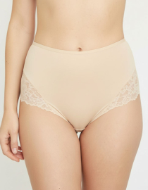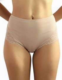 Луксозна бикина с висока талия от микрофибър и дантела, бежово, 264